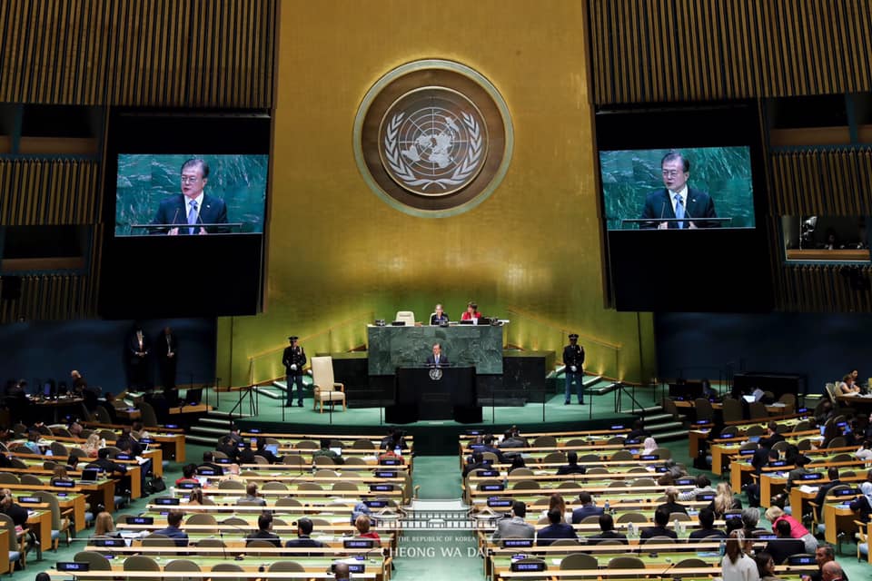 文大統領は韓国大統領としては初めて3年連続で国連総会に出席した。