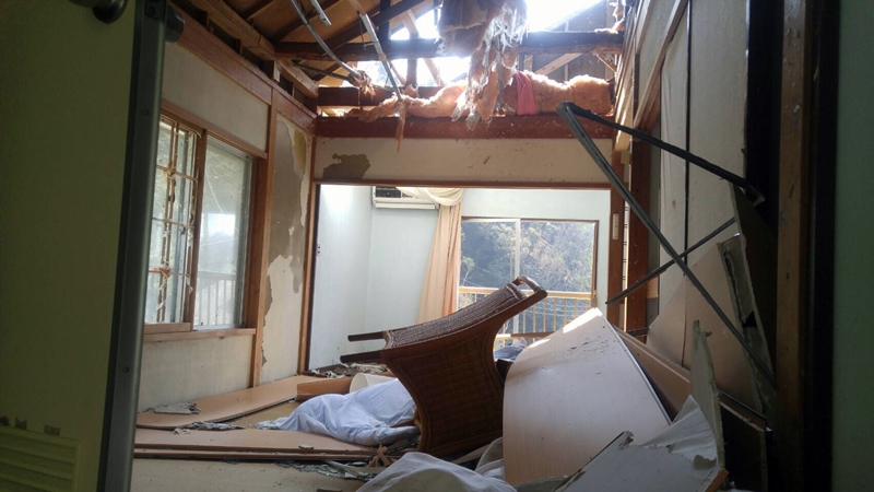 9日までに把握できた被害家屋は少なくとも20数軒に及ぶ。屋根が完全に崩落した団員は3週間の避難所生活を経て現在は県営住宅に身を寄せている。ただし、使用限度は3週間とあって途方に暮れている。