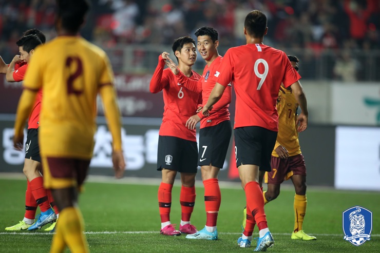 スリランカは5バック(DF選手5人)で韓国戦に臨んだが、25センチ以上も高い金信旭を防ぐのは難しかった。金信旭は一人で4得点した。金信旭と3トップで並んだ孫興民(ソン・フンミン、27、トッテナム)が2得点1アシスト、黄喜燦(ファン・ヒチャン、23、ザルツブルク)が1得点1アシストだった。前半だけで5得点した。金信旭は3-0とリードした前半30分、金紋奐(キム・ムンファン、釜山)のクロスをジャンプもせず頭で合わせ、ヘディングゴールを決めた。