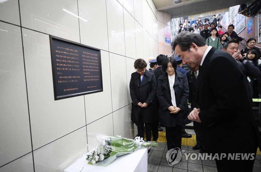 追悼碑には「カメラマンの関根史郎氏、韓国人留学生の李秀賢氏は2001年1月26日午後7時14分頃、新大久保駅において線路上に転落した男性を発見し、自らの身の危険を顧みず救助しようと敢然と線路に飛び降り、尊い命を落とされました。両氏の崇高な精神と勇敢な行為を永遠にたたえ、ここに記します」と刻まれている。