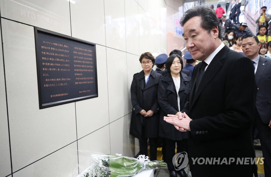 李首相は献花後、記者団に対し、「人間愛は国境も超えるということを二人の義人が実践して見せた」として、「そのような献身の心を追悼するために来た」と述べた。また、「両国は長くみれば1500年の友好交流の歴史があり、不幸な歴史は50年にならない」として、「金大中(キム・デジュン)元大統領が話したよう、50年足らずの不幸な歴史のため、1500年に及ぶ友好と協力の歴史に傷をつけることは愚かなこと」と強調した。