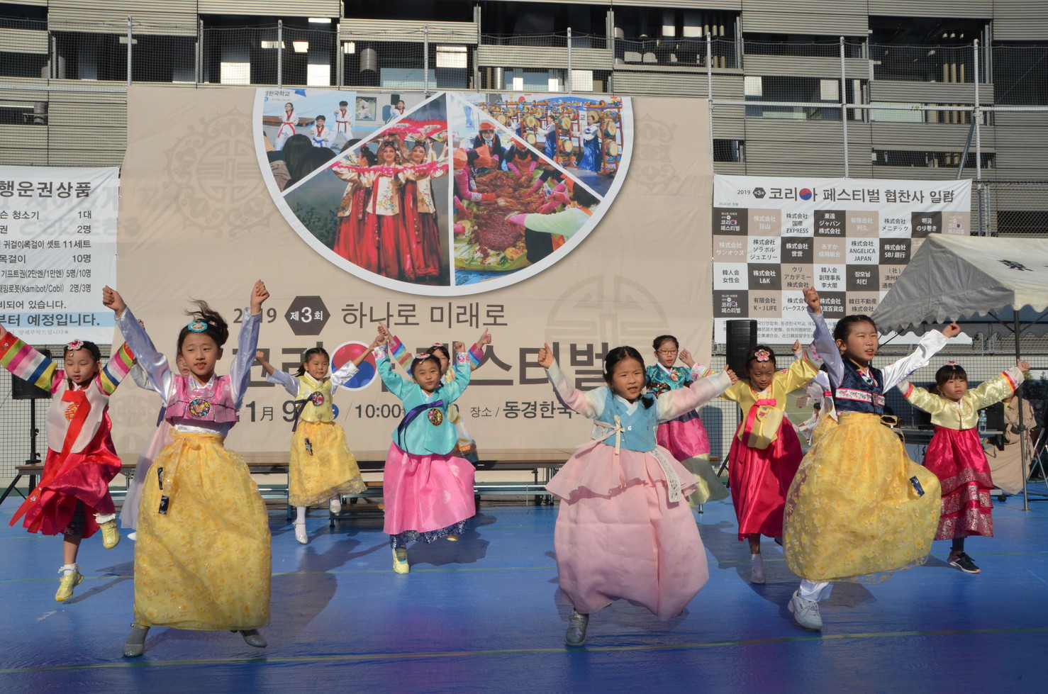 東京を拠点に活躍しているIRUM金美福舞踊団はテグム散調や京畿民謡、チャンゴチュム、パンソリ、サムルノなどの伝統文化を披露した。東京泉学校で学ぶ在日中国朝鮮族の子どもたちはK-POPダンスパフォーマンスを披露して会場からひときわ大きな喝さいを浴びた。