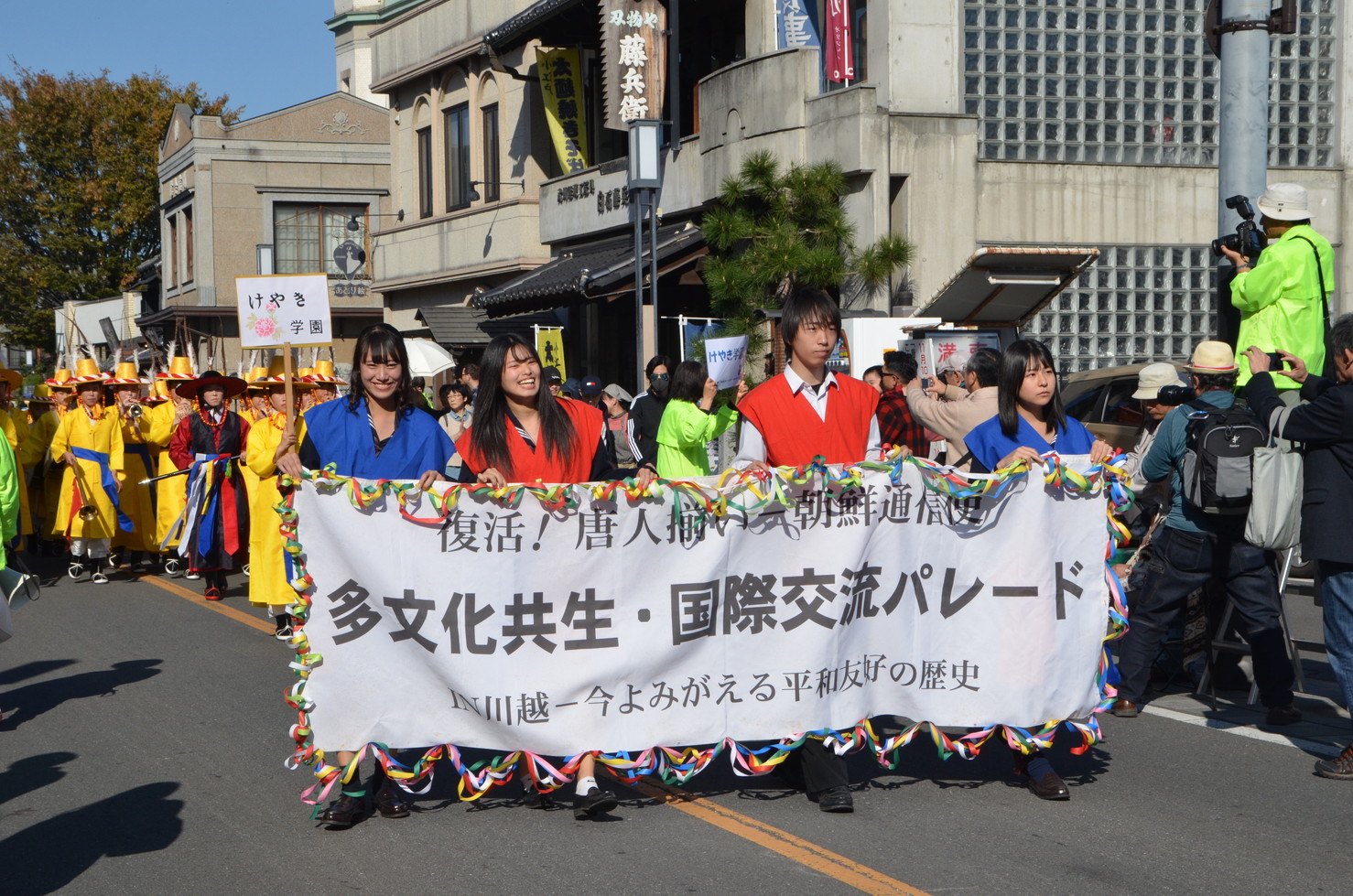 【埼玉】多文化共生・国際交流パレード「川越唐人揃い」(同実行委員会主催)が10日、川越市内であった。これは1700年ごろに川越氷川祭礼(川越祭り)でお披露目された朝鮮通信使の仮装行列「唐人揃い」を現代に復活させたもの。総勢500人以上が江戸時代の面影を残す蔵造りの街並みをにぎやかにパレードした。