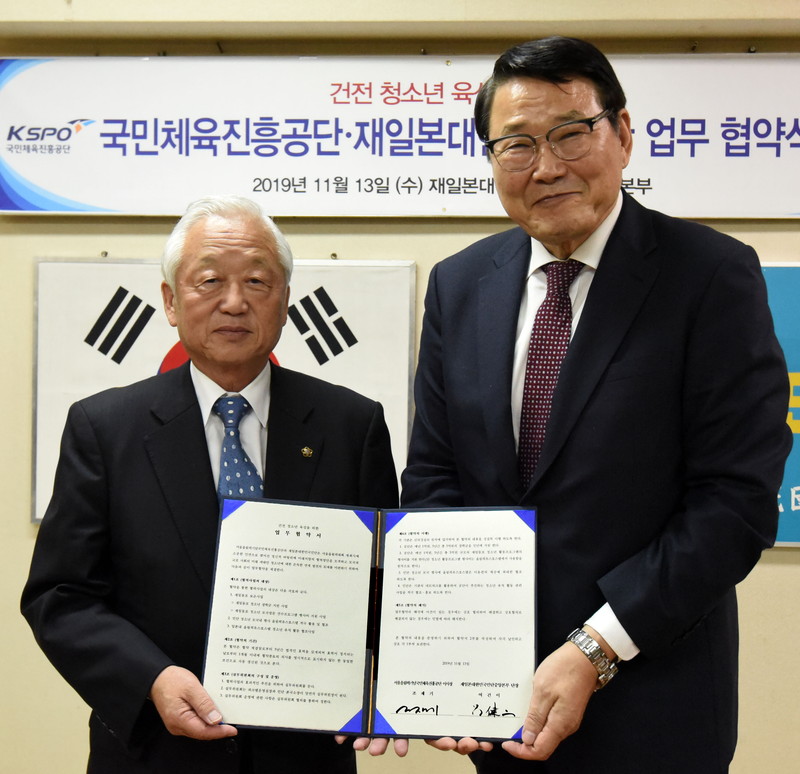 韓国の国民体育振興公団(趙在基理事長)は13日、民団中央本部と「健全青少年育成のための業務協約書(MOU)」を結んだ。この日、趙理事長と民団中央本部の呂健二団長ら15人が韓国中央会館で締結式を行った。