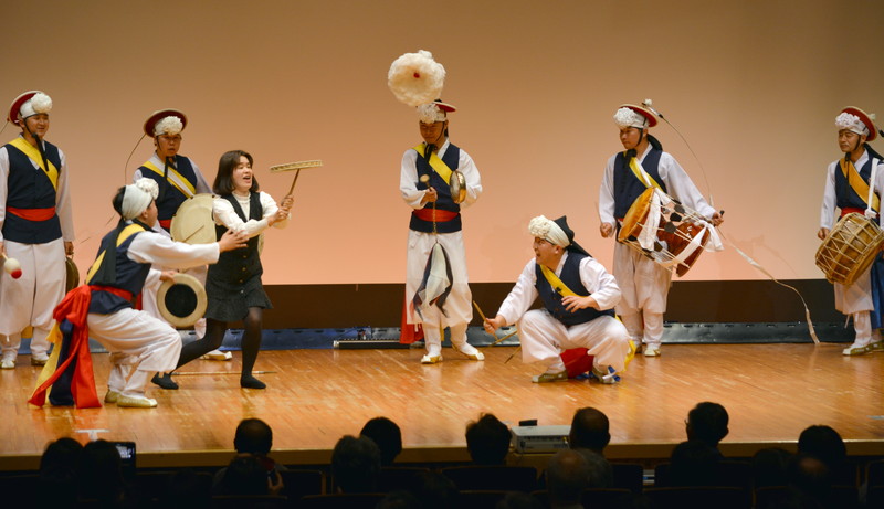 金安那・駐日韓国大使館総領事をはじめ、国会議員や都・区議会議員も多数来場し、300席の会場に立ち見が出るほど盛況となる約400人が来場し、釜山芸術団の伝統芸能に熱い声援を送っていた。