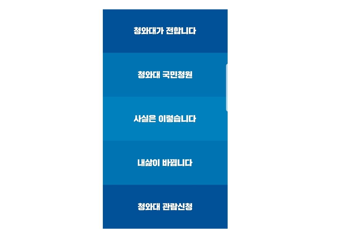 アプリ内には青瓦台と関連した情報に容易にアクセスできるメニューが用意された。