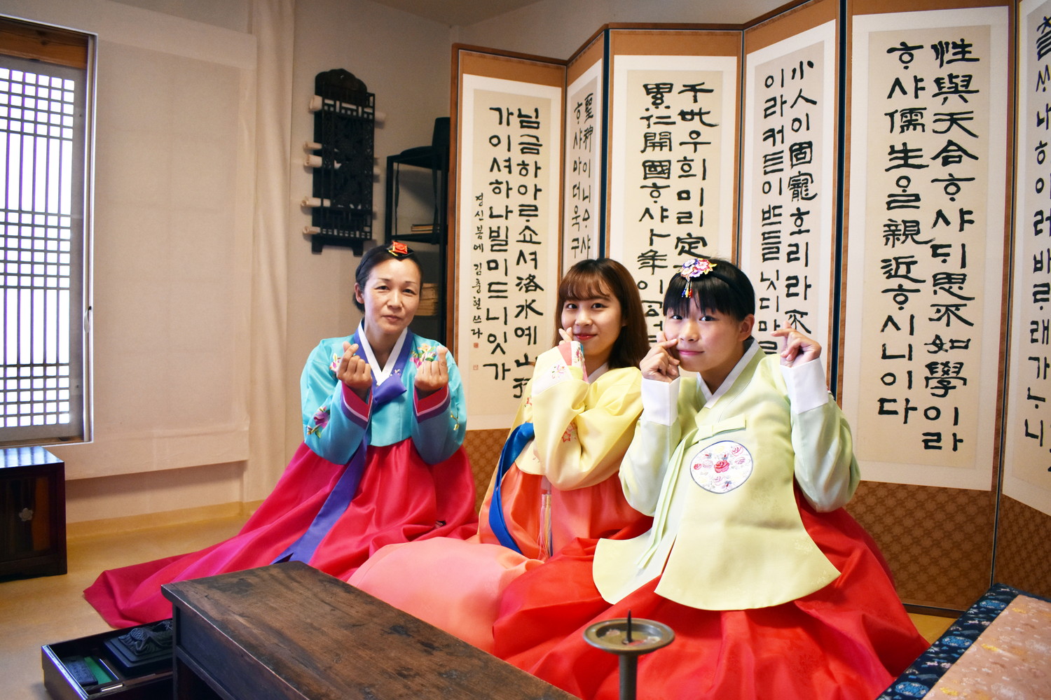 初めて韓服を着る参加者も多く、文化院の女性職員が着付けや髪型を整えるのを手伝った。参加者たちは、伝統家屋「サランバン」で記念撮影を行った後、各自で写真を撮りあった。