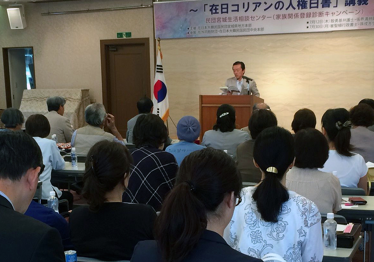 書籍『在日コリアンの人権白書』の執筆者を講師にした講演会が12日、民団宮城県本部で開かれ、同胞ら約60人が参加した。