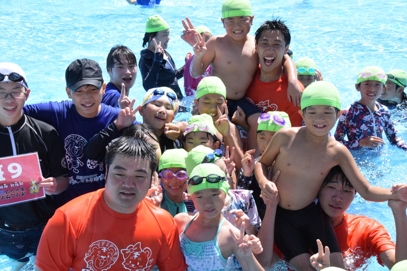 [ プールで遊ぶオリニとリーダー ]