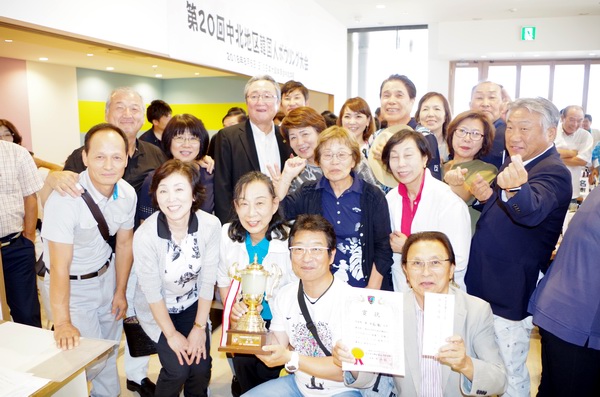 ゲーム終了後は東名ボール1Fのパーティー会場で成績発表を兼ねた懇親会も行われ、団体・個人各表彰と20回大会の記念として総合順位の下1桁各2位に特別賞が手渡されました。また当日賞として5位に会場であります東名ボールから賞品が授与されました。