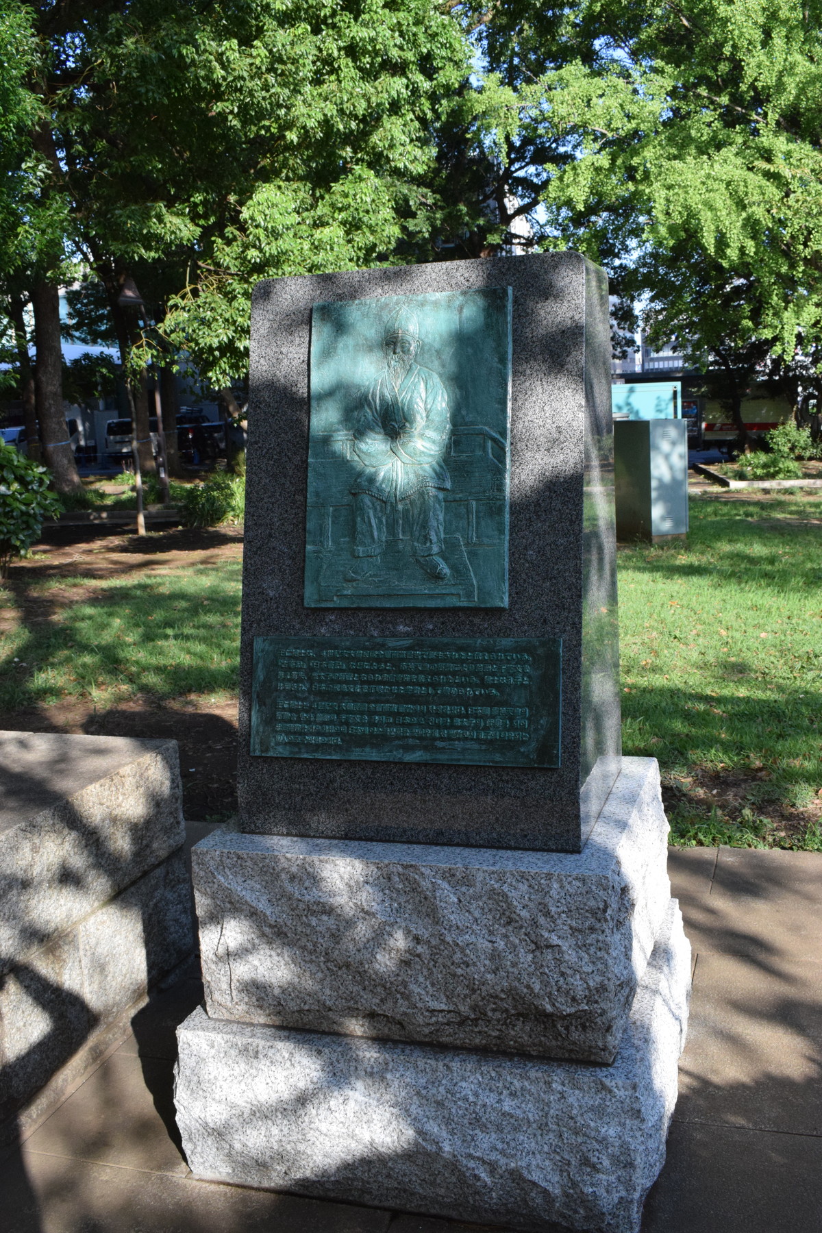 王仁博士青銅刻画碑建立3周年を記念する「青銅刻画碑台座高改修除幕式」(社団法人韓日文化親善協会主管、大韓民国文化体育観光部協賛)が5日、東京・台東区の上野恩賜公園内で行われた。