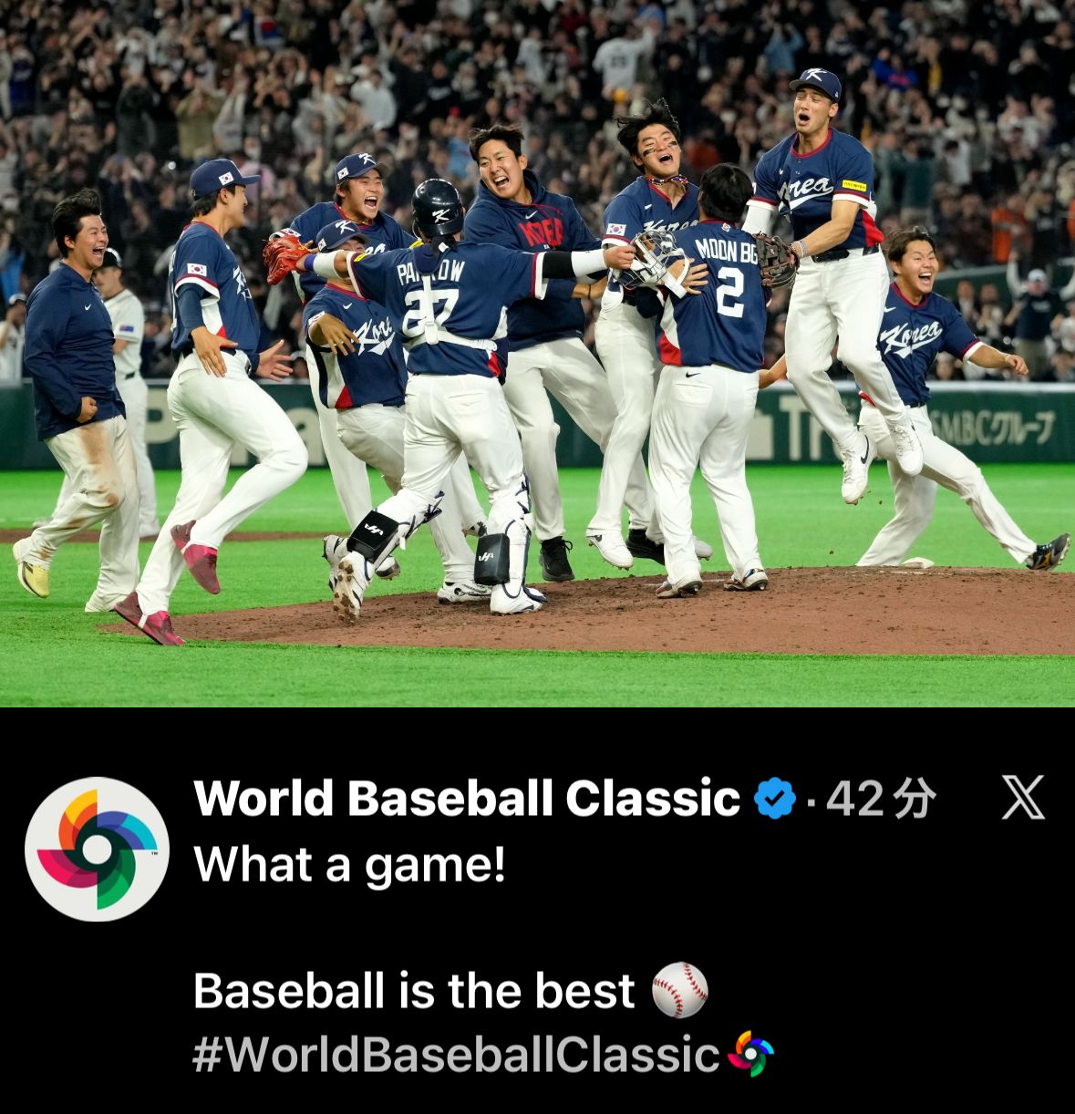 韓国代表がWBCで8強に進んだのは2009年以来、4大会ぶりの快挙で準々決勝の対戦相手はプールDの1位チームとなる。プールDでは、ドミニカ共和国やベネズエラが有力視されている。