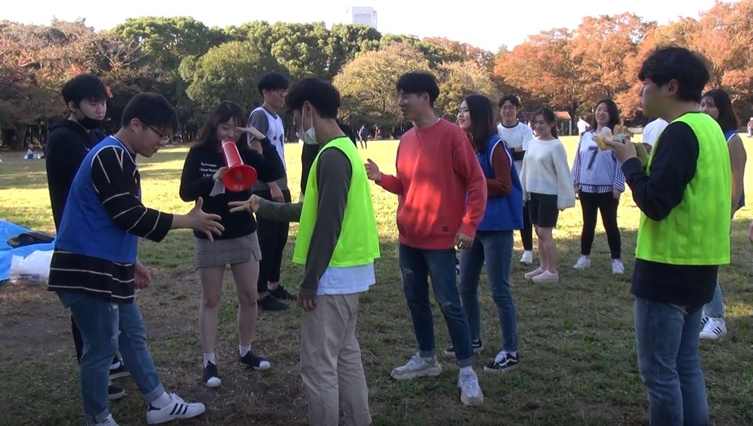 大会には約60人の留学生が参加。それぞれ赤・青・黄色・白の4チームに分かれて、ジェスチャーゲームや二人三脚などの競技で得点を競った。天候にも恵まれ、参加者たちは終始笑顔で競技を楽しんだ。