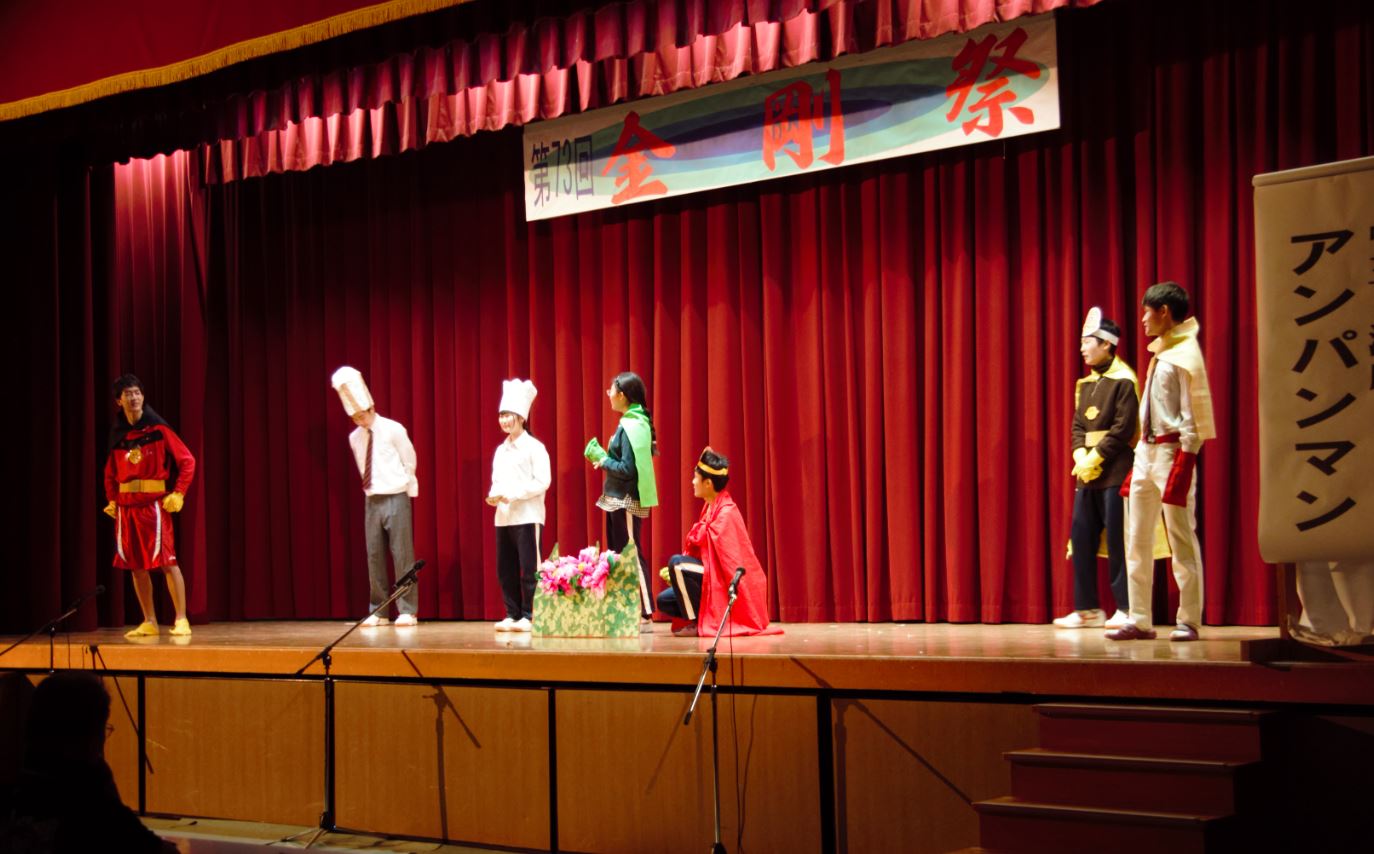 中学3年生は誰もが知っている「アンパンマン」を題材にした演劇を披露した。大取りとして同校の誇る舞踊部が出演した。