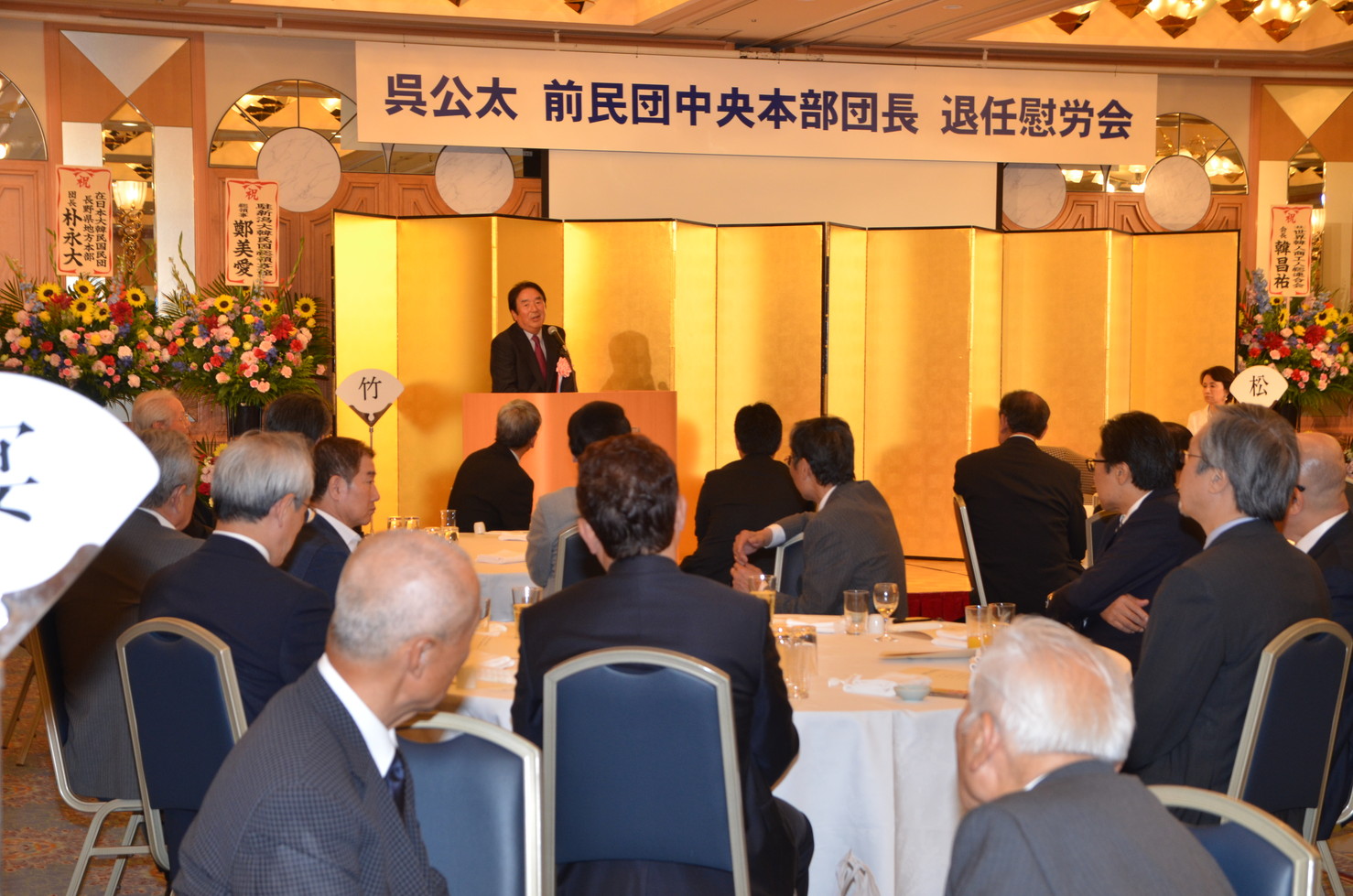 発起人を代表して朴団長が、民団中央本部団長として2期6年間をまっとうした呉前団長のたぐいまれなリーダーシップと行動力を称えた。
