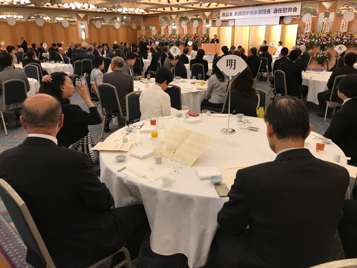 謝辞を述べた呉前団長はヘイトスピーチ対策法の成立を挙げ、「一つ大きな仕事をしたという自負心をもっている」と胸を張った。