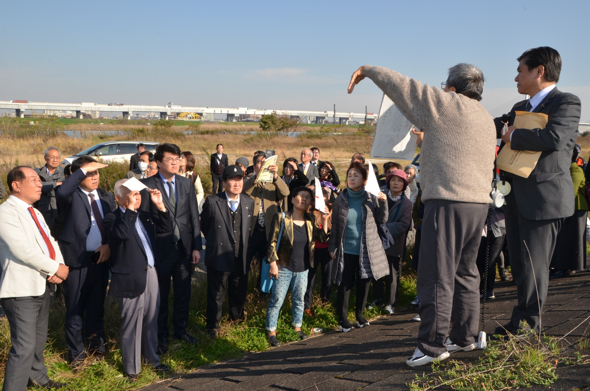 在日韓国人の足跡を訪ねて歩く第2回フィールドワークが11月21日、東京都内で行われた。民団東京本部(金秀吉団長)が東京韓国教育院(兪皓善院長)と共催した。民団と婦人会の関係者60人が参加。まず東京韓国YMCAで開会式を行い、来年100周年を迎える2・8独立宣言について、梁東準・元神奈川大学客員教授の講演を聞いた。この後、バスに分乗し、1923年の関東大震災時に虐殺のあった墨田区の荒川河川敷を訪ねた。36年間、追悼行事に関わっている西崎雅夫さん(一般社団法人ほうせんか理事)が案内役を務めた。西崎さんは「95年前の惨劇でも、遺族にとってはまだ終わっていない。過ちを繰り返させないためにあきらめず語り続けていく」と決意を述べた。