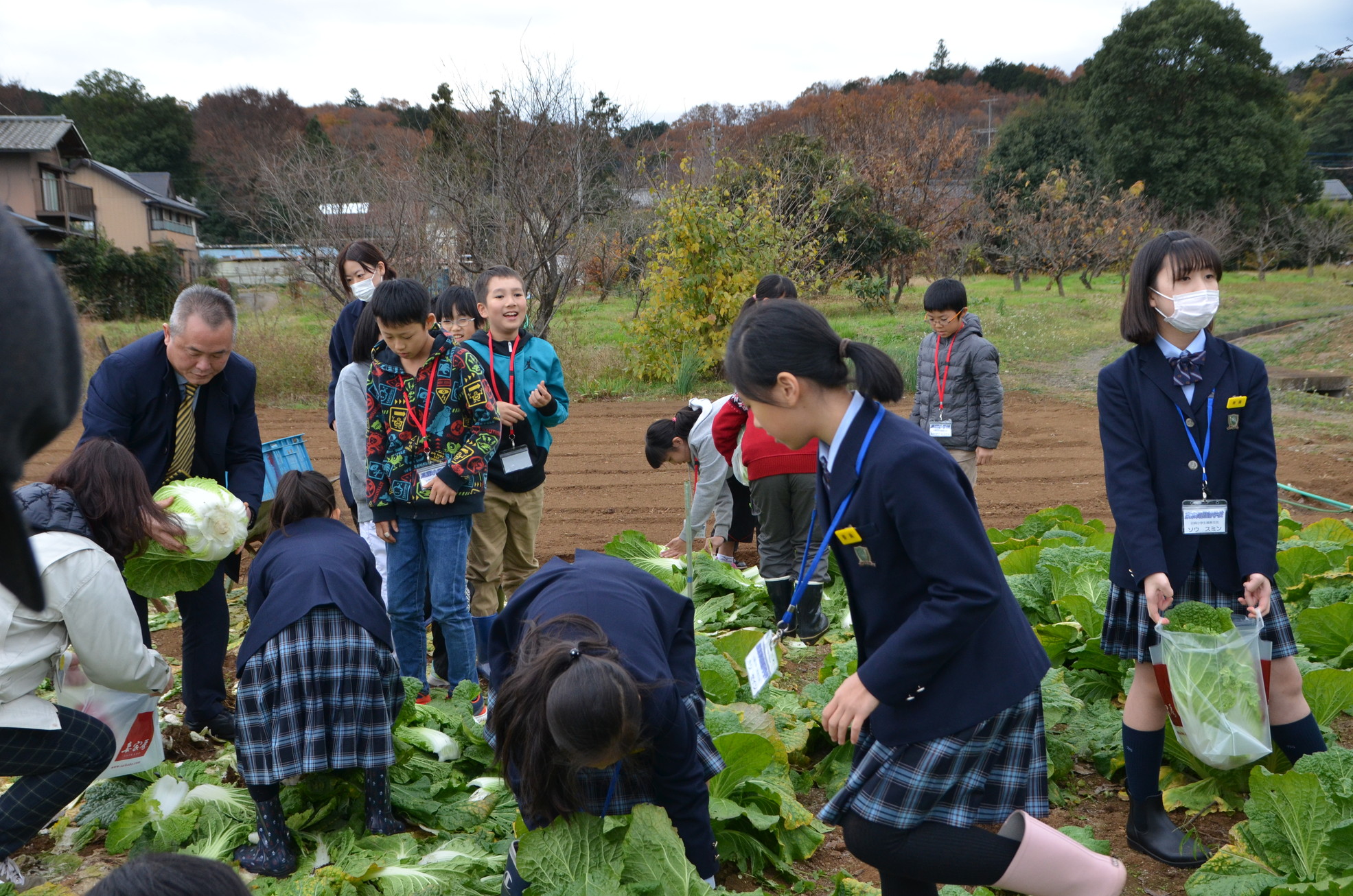 【埼玉】東京韓国学校初等部と日高市立高麗小学校の児童、合わせて23人が8日、高句麗からの渡来の里、日高市で韓国白菜の収穫を体験した。両国の子どもたちの交流と親睦を図ろうと日高市(谷ケ﨑照雄市長)、東京韓学(郭尚勲校長)、新宿韓国商人連合会(呉永錫会長)の3者が取り組んだ。高麗郡建郡1300年祭を契機に始まり今年が5年目。