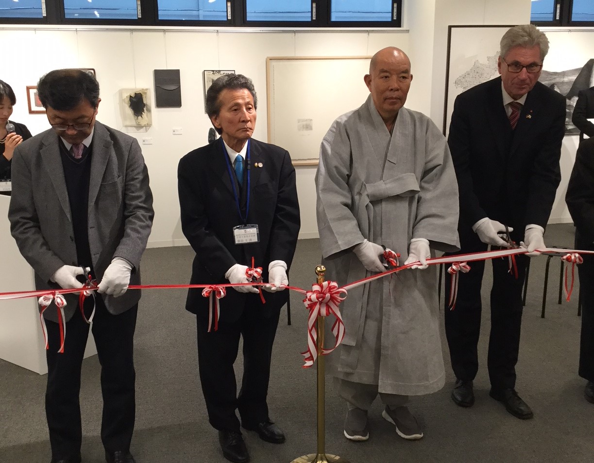 7日の開館披露式典には民団京都本部の金政弘団長や韓国東国大学校の韓泰植総長など関係者100人が参加した。館長でもある王さんは「作品を通してさまざまな作家の生きざまを見ることが好きだ。開館できて感無量の思いだ」と涙ぐんだ。