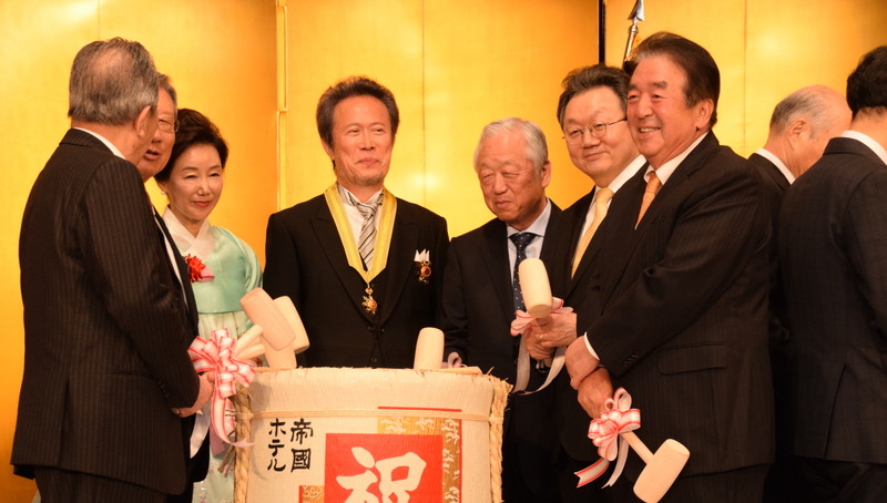 2016年に統合した一般社団法人・在日韓国商工会議所(韓商連)の初代会長を務めた金光一氏(同会名誉会長)の韓国国民勲章「牡丹章」受勲を祝う会が26日、東京都内のホテルであった。韓国大使館や民団、韓商連関係のほか、韓日の親善協会や議員ら約250人がお祝いに駆けつけた。