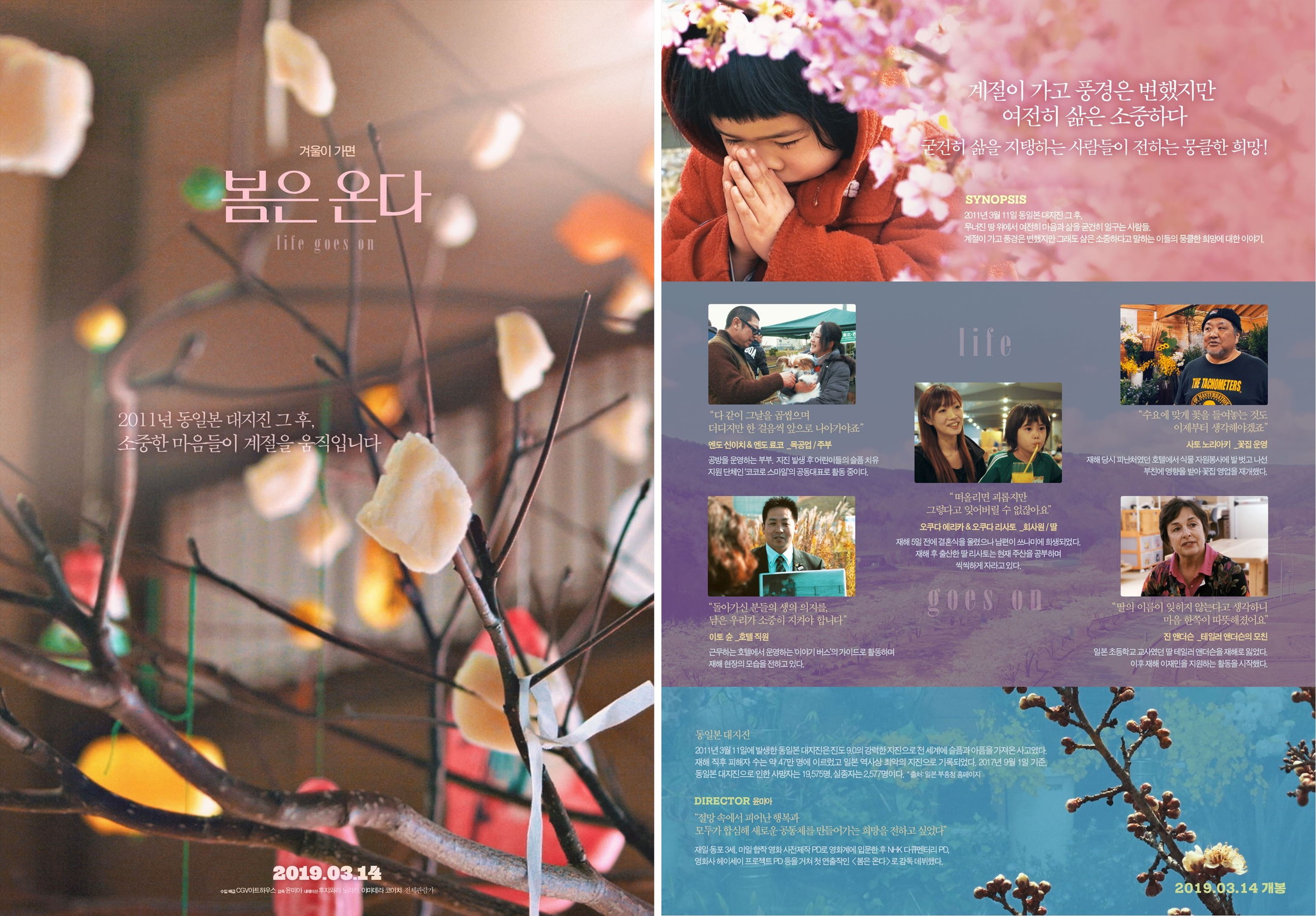 みな、喪失感や葛藤を抱えている。それでも悲しみを内に隠し、復興に向けて新しい一歩を踏み出そうとしている。そうした一人ひとりの決意を自然豊かな風景とともに映し出す。韓国語版のタイトルは「春は来る」とした。海外での劇場公開は韓国が初めて。