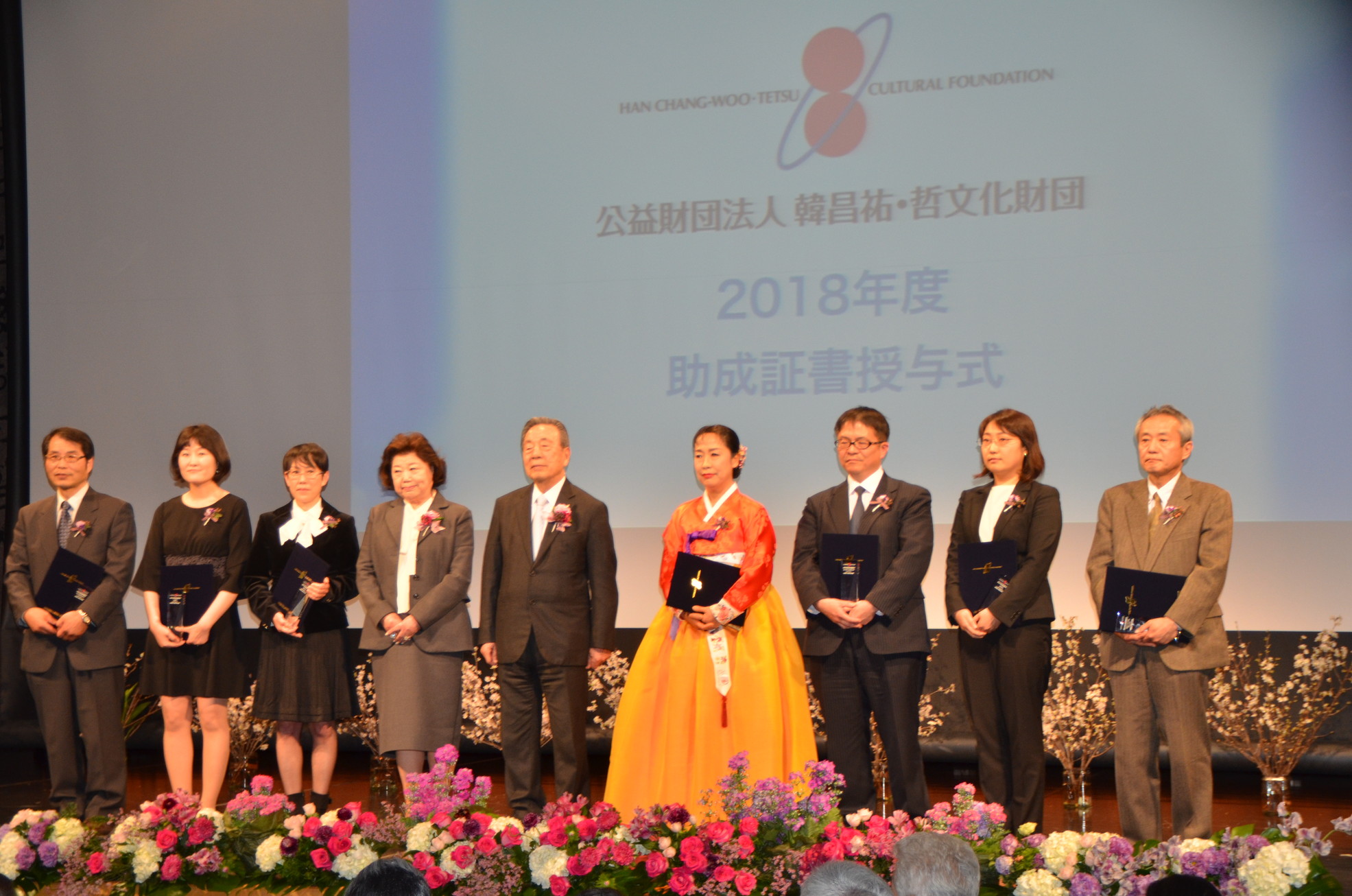 公益財団法人韓昌祐・哲文化財団(韓昌祐理事長、東京都千代田区)の助成証書授与式が14日、東京・新宿の韓国文化院で開かれた。2018年度の助成受贈者は個人4件と団体3件。助成総額は1185万5400円だった。昨年12月14日、第3回理事会で選考委員会からの報告を受け、決まった。