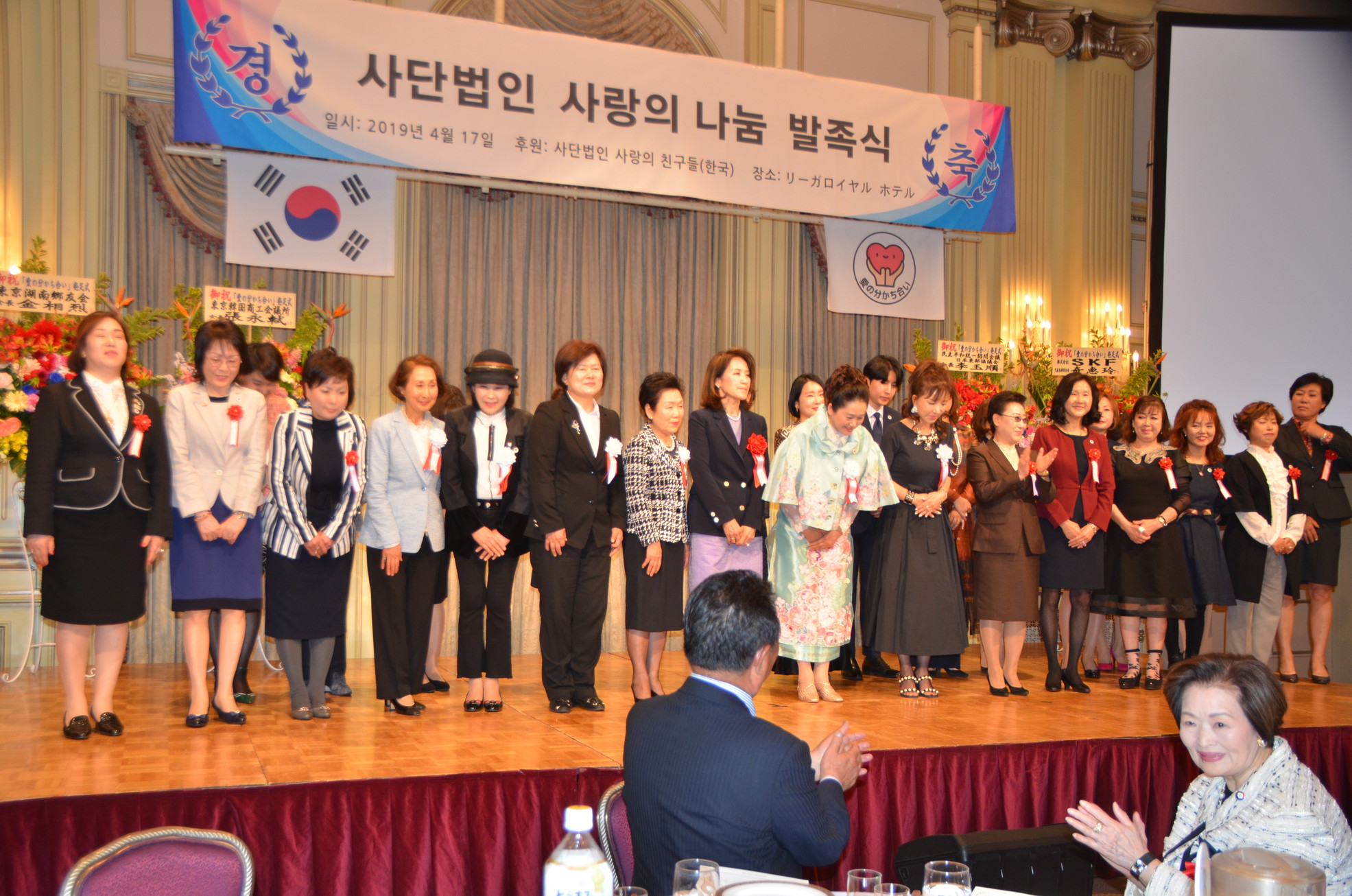発足式には離任を控えた李洙勲駐日韓国大使の夫人、李栄姫さんも参席。「貧しい環境や、自然災害など愛の手を必要としているところを訪ね、夢と希望を分かち合ってきた」とこの間の活動をたたえた。民団東京本部の李壽源団長も社会的弱者への支援に「民団として協調していきたい」と賛意を示した。