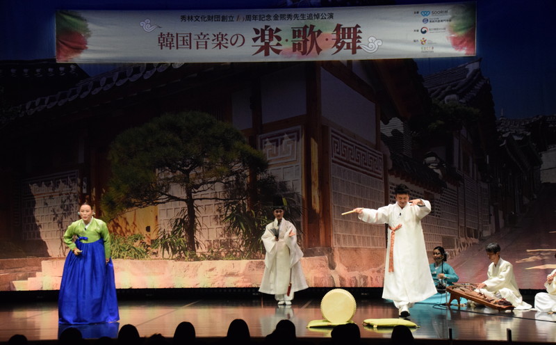 「秀林文化財団」を設立し、韓日両国で教育と文化事業に邁進し、人材育成に努めてきた在日韓国人1世、故金熙秀さんの追悼を兼ねた同財団10周年記念の公演「韓国音楽の楽・歌・舞」が18日、東京都新宿区の韓国文化院で開かれた。