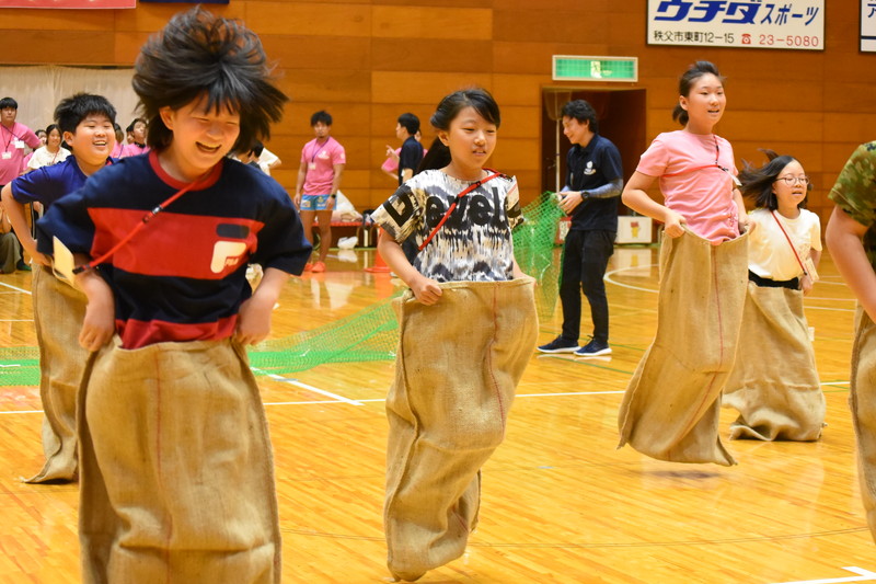 翌日は秩父市体育館に場所を移し運動会。じゃんけん列車、障害物津競争、玉入れ、リーダーリレーなどを楽しんだ後、夜の「ナイトフェスティバル」はダンスやゲームなどを楽しんだ後、日程中のスライドショーが上映されると、涙を流して友だちとの別れを惜しんでいた。