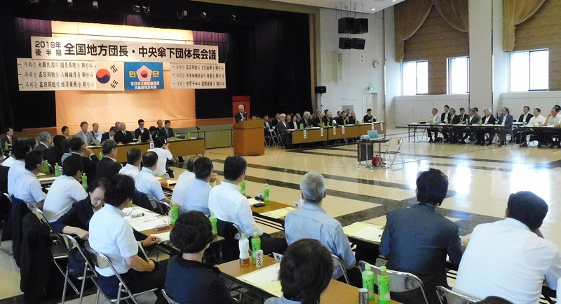 民団中央本部は6日、大阪韓国会館(大阪・北区中崎)で2019年度後半期全国地方団長・中央傘下団体長会議を開き、悪化が続く韓日関係対する状況に共通認識を深めるとともに、各地域における草の根友好親善活動の促進を強化していく事を確認した。また、新たな趣向で開催した地域同胞リーダーワークショップ、次世代サマースクールを中心に展開した次世代育成運動など前半期の活動を総括した。後半期の団務では、民団が韓日両国の懸け橋である事を再認識し、草の根民間交流の増進に尽力していくほか、地域同胞ネットワークづくりへの同胞世帯訪問活動、「北送」60年関連や来年4月の韓国国会議員選挙への参与などを周知徹底した。