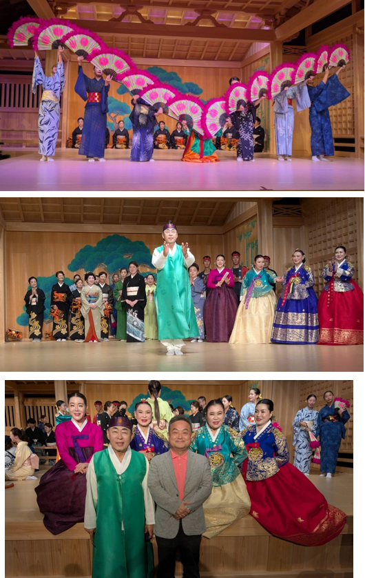日韓の舞踊交流であり、日本の能楽団や岡山後楽館高校生などが友情参加した。