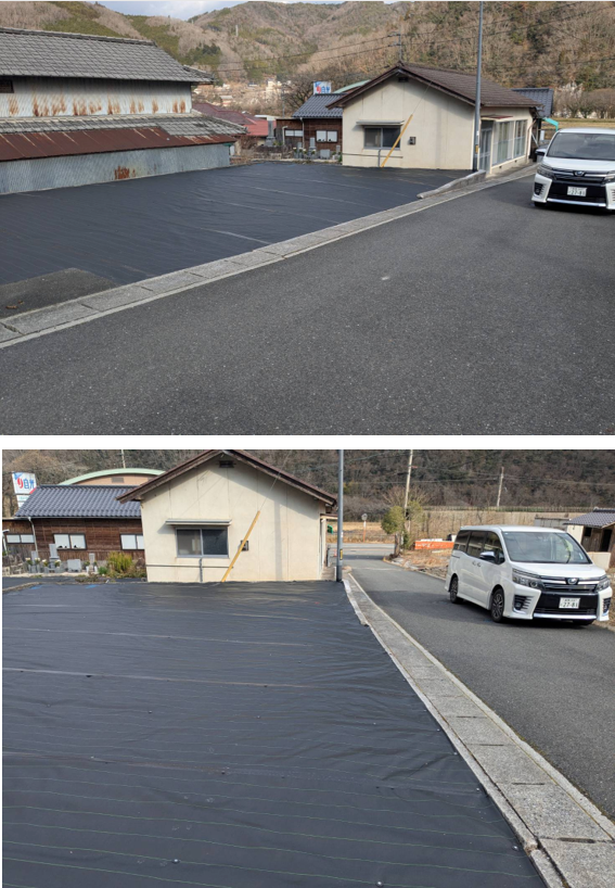 今後のことを考えて、強力な防水シートを被せて雑草が生えないようにした。