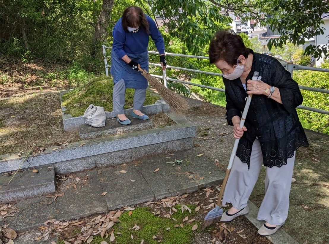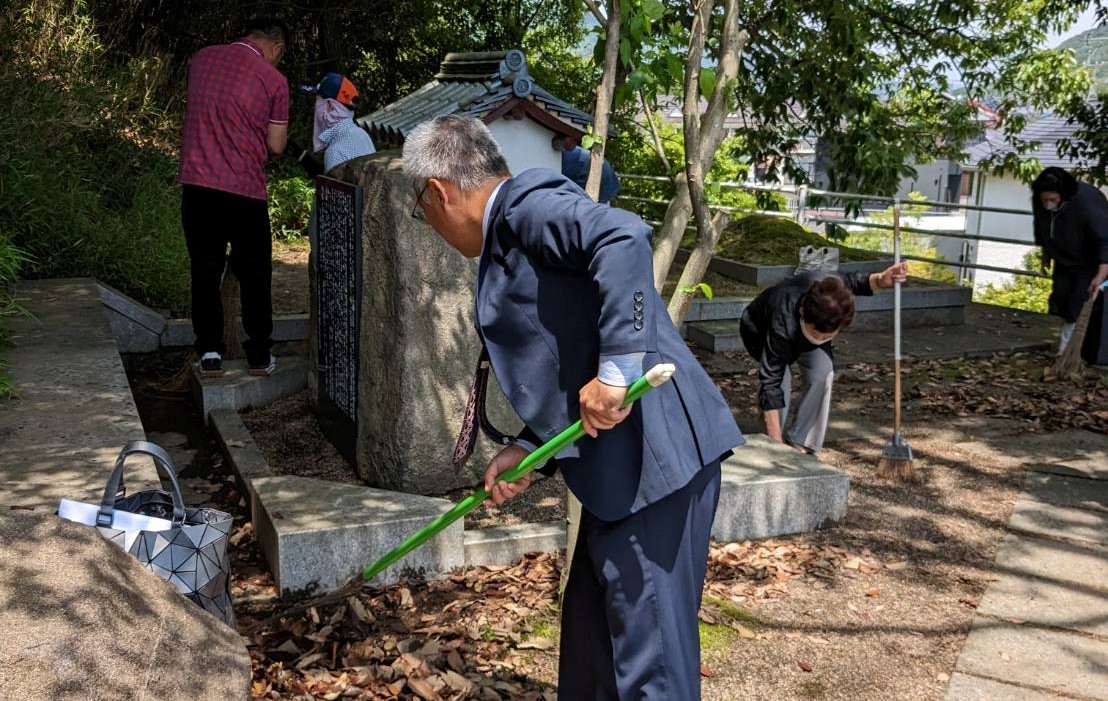 総会後は婦人会の方々と共に、備前市香登の鼻塚を清掃して慰霊を行いました。