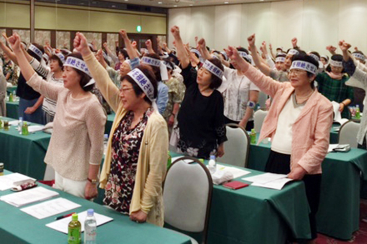 東北から全国巡回 【宮城】ヘイトスピーチの根絶に向けた婦人会中央本部(朴善岳会長)の決起大会が3日、東北地協会場を皮切りにスタートした。最後の関東地協(7月1〜3日、群馬県草津温泉)まで全国を6カ所に分けて巡回し、会員の意思統一を図っていく。延べ参加者は最終的に2000人をめざしている。 今回の決起大会は、婦人会中央本部としては年間最大行事のひとつ、全国大研修会の場を借りて行われた。東北地協研修の会場となった仙台市の秋保温泉には地元の宮城をはじめ北海道、青森、秋田、岩手、山形、福島の1道6県から約150人が参加した。 朴会長は「外国ではヘイトスピーチを犯罪とする国もある。その意味で日本はまだ、成熟した民主主義国家とはなりえていない。婦人会は日本社会との共生をめざし、断固とした姿勢でヘイトスピーチの根絶に向けて努力していく」と決意を表明した。決起集会では人種差別・民族差別を煽るヘイトスピーチを「許さない、根絶させるぞ」「規制する法律を速やかに制定しろ」などとするシュプレヒコールを全員で繰り返し叫んだ。 決起集会を前にした2日の開会式には、民団中央本部の呉公太団長をはじめとして宮城の田炳樽団長、山形の車寿鎔団長らが駆けつけ、参加者を激励した。 呉団長は「排外主義的な嫌韓集団の勢いには陰りが見られる。世の中は法規制に傾きつつあり、流れはわれわれの味方だ。ヘイトスピーチを根絶するまでは決して手を緩めてはならない。皆さんの協力をお願いする」と呼びかけた。また、来賓の梁桂和駐仙台総領事は草の根レベルでの民間交流が重要と強調した。 研修会ではアシアナ航空で要職を歴任してきた権鎔大氏、在日韓国科学技術者協会の洪政國前会長、民団中央人権擁護委員会副委員長でもある鳥取本部の薛幸夫団長が講義に立った。 席上、朴会長から婦人会活動で顕著な業績を残した金吉子・前婦人会北海道本部会長に感謝牌が贈られた。このほかの7人にも感謝状を手渡した。 11日からは中北地協研修が三重県鳥羽市で開かれる。 (2015.6.10 民団新聞) |