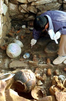 | 国宝級の金銅冠など出土 漢城百済の公州支配力立証(03.12.10) |