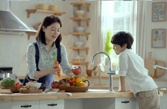 ジューサーブランド「HUROM(ヒューロム)」の広告「子どもの食習慣は母親から」に出演中の女優イ・ヨンエ。かつての優雅さと品格を重視した映像とは異なり、ニンジンやリンゴといった果物を片手に子どもと会話し、親しみやすさをイメージした。とはいっても、美貌の輝きは変わらない。MBC(文化放送)の企画ドラマ「大長今2」(原題)への出演をめぐり、ファンをヤキモキさせている。