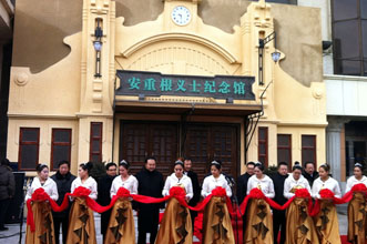 | | ハルピン駅に設立された「安重根記念館」 | | | 朝鮮労働党政治局拡大会議の場から連行される張成沢(13年12月) |