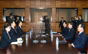 | | 20日からの離散家族対面行事実施に合意した5日の南北赤十字実務協議(左=韓赤側) |