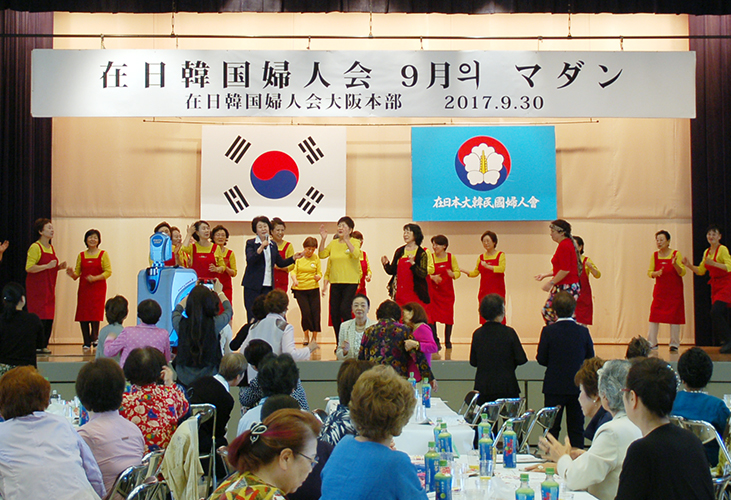【大阪】婦人会大阪本部(金秋江会長)は9月30日、大阪市北区の大阪韓国人会館で会員向け親睦企画「9月のマダン」を開催した。昨年は作品展とカラオケ大会で構成したが、今年は「韓国伝統ファッションショー」が目玉企画。オリニたちの踊りや、韓服姿の新郎新婦役によるミニ喜劇が会場を沸かせた。