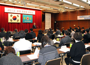組織活性化および実務者のスキルアップと紐帯を強化するための全国実務者の第一陣研修会が5日から6日まで、東京港区南麻布の韓国中央会館などで行われ、地方本部・支部実務者ら59人が参加した。 呉公太中央本部団長はあいさつで、「自分も長野の諏訪という小さな支部で長いこと事務部長をやった。皆さんの苦労をよく知っている。中央の最大の仕事は地方の支部を支えていくことだ。今後も支援を惜しまない」と、激励した。 DVD「民団の歴史」の上映後、河政男事務総長が「民団とはなにか。民団の当面課題(重点方針)」について講義。さらに1,宣言・綱領・規約2,新在留管理制度と外国人住民基本台帳制度3,次世代育成事業などについて、担当局の局長らから説明を受けた。 河事務総長の進行による中央実務陣(各局局長・副局長)との対話・意見交換では1,在日および民団の歴史を再認識した2,これを機会に民団の「綱領」と「第7次宣言」を勉強したい3,いろいろな声を聞くことができる団員宅訪問が活動の基礎であることを再確認した4,オリニ事業についてもっと積極的に知らせていきたいなどとの表明があった。呉団長主催の懇親会では「各地実務者の連帯強化へ今回のような研修会を継続してほしい」との声が多かった。 翌日は、今年新築された韓国大使館を見学したほか、都立横網町公園(墨田区)にある「関東大震災朝鮮人犠牲者追悼碑」を訪れ、黙祷を捧げた。 (2013.12.11 民団新聞) |