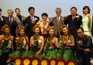 国会議員らを対象にドキュメント「がんばっぺフラガール」(小林正樹監督、製作=ジェイ・シネカノン)の試写会が8日、東京・永田町の憲政記念館で行われた。 上映に先立ち、ジェイ・シネカノンの丁廣鎮代表は「被災地いわき市のスパリゾートハワイアンズから製作依頼があった時は、2つ返事で引き受けた。福島県はいまだに4重苦の被害にあえいでいる。この映画を観覧することで被災地を支援しようとの気持ちが再び起これば幸いだ」とあいさつした。 渡部恒三(民主)、福島みずほ(社民)議員らはフラガールとともに、「復興支援の輪が全国に広がるように」と訴えた。 (2011.11.16 民団新聞) |