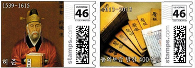 朝鮮朝1613年の医書『東医宝鑑』の刊行400周年を迎え、米国で記念切手が6月下旬に発行された。米ニュージャージー州のコリア系メディア企業「メディア・ゾア」のハン・ジス社長が米郵政公社の許可を得たもの。著者の許浚と『東医宝鑑』の2種類で、1枚46セント(約48円)。160枚ずつ計320枚が発行された。