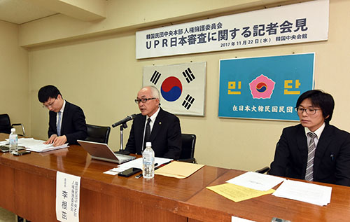 国連人権理事会は11月14日、日本政府に対して第3回審査を実施し、16日に結果を発表したことに基づいたもの。民団人権擁護委員会は、UPR審査の事前準備のための情報提供として、民族的マイノリティーの権利の否定、人種差別禁止法の不在、ヘイトスピーチ・ヘイトクライム、永住外国人の地方参政権の欠如、公務就任権の制限など、在日韓国人が直面する問題に関する報告書を今年3月に国連人権高等弁務官事務所(OHCHR)に提出したほか、11月に人権擁護委員をジュネーブに派遣し、政策提言活動実施など、UPR審査に対して働き掛けてきた。