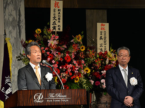 昨年統合した一般社団法人・在日韓国商工会議所(韓商連)の創立55周年記念式典と祝賀会が5月19日、東京都内のホテルで開催された。地方韓商や民団関係者のほか日本の政経人士も多数が列席、約500人が華やかに55年の歩みを祝し、同胞商工人は新たな団結を誓い合った。