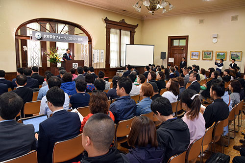 韓国政府が官民を挙げて推進している韓食(韓国料理)のグローバル化を目的に世界各国同胞の韓食業者と団体が一堂に会する「世界韓食フォーラム」が6月9日までの3日間、札幌で開催された。今回は、焼肉など在日同胞が築いてきた日本における韓食の成功例を紹介し、今後の方向を提起する意見開陳が行われた。また平昌五輪組織委員会が選んだ「韓食メニュー10選」を実演調理し日本の飲食業界関係者に紹介する「アカデミー・イン札幌教室」も行われ人気を集めた。