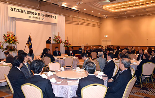 在日同胞の郷土親睦会としては最も古い、在日本高内里親睦会の創立90周年祝賀会が10月15日、東京都荒川区のホテルで開催された。120人の会員と家族をはじめ、民団東京本部と支部役員のほか、駐日韓国大使館からも李讚範総領事らが参席した。金哲祥会長は「ひとえに故郷を愛する気持ちこそが長年、親睦会を支えてきた原動力になったと思う。伝統を重んじながらも新しい目線に立ち、しっかり連帯を図っていきたい」と新たな出発を誓った。