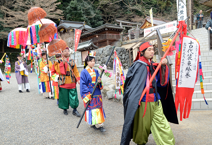 高麗神社境内をランウェイに 高句麗、飛鳥、平城京