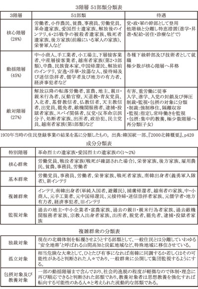 出身成分によって差別する北韓の成分政策は、住民を分轄統制する根幹になっている(「北韓人権白書2010」より) (2011.8.15 民団新聞) |