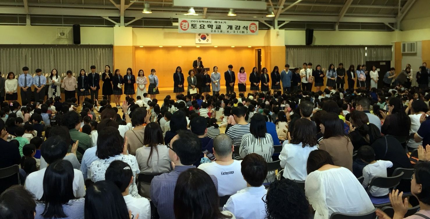 2018学年度東京韓国学校附設土曜学校が4月21日、開講した。受講生は613人。保護者を含め約1000人が同校小講堂を埋めつくした。