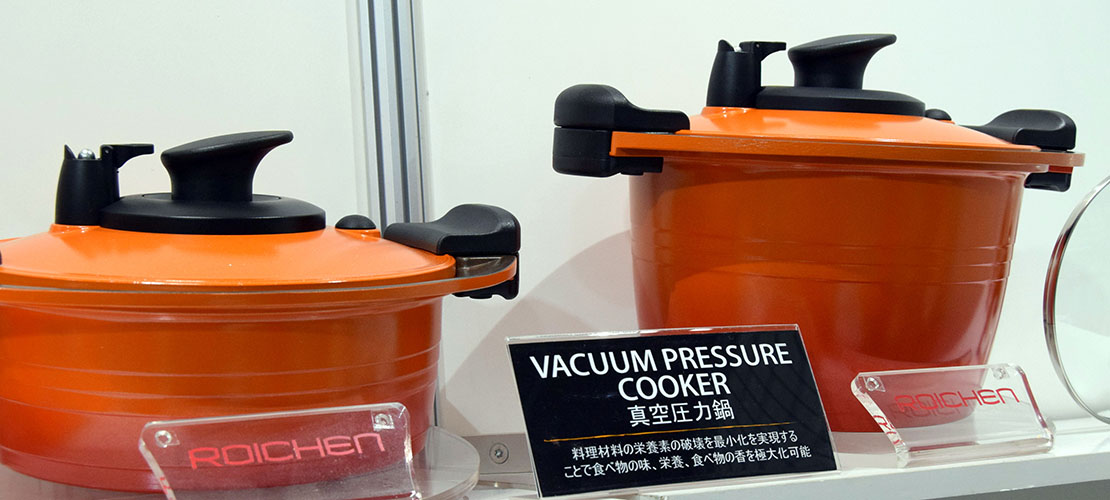 また、シリコン素材の圧力鍋、スチーム調節ができる鍋や水を使わずに蒸す無加水鍋や生鮮食品を真空保存するフードケースなどが来場者の人気を呼んだ。